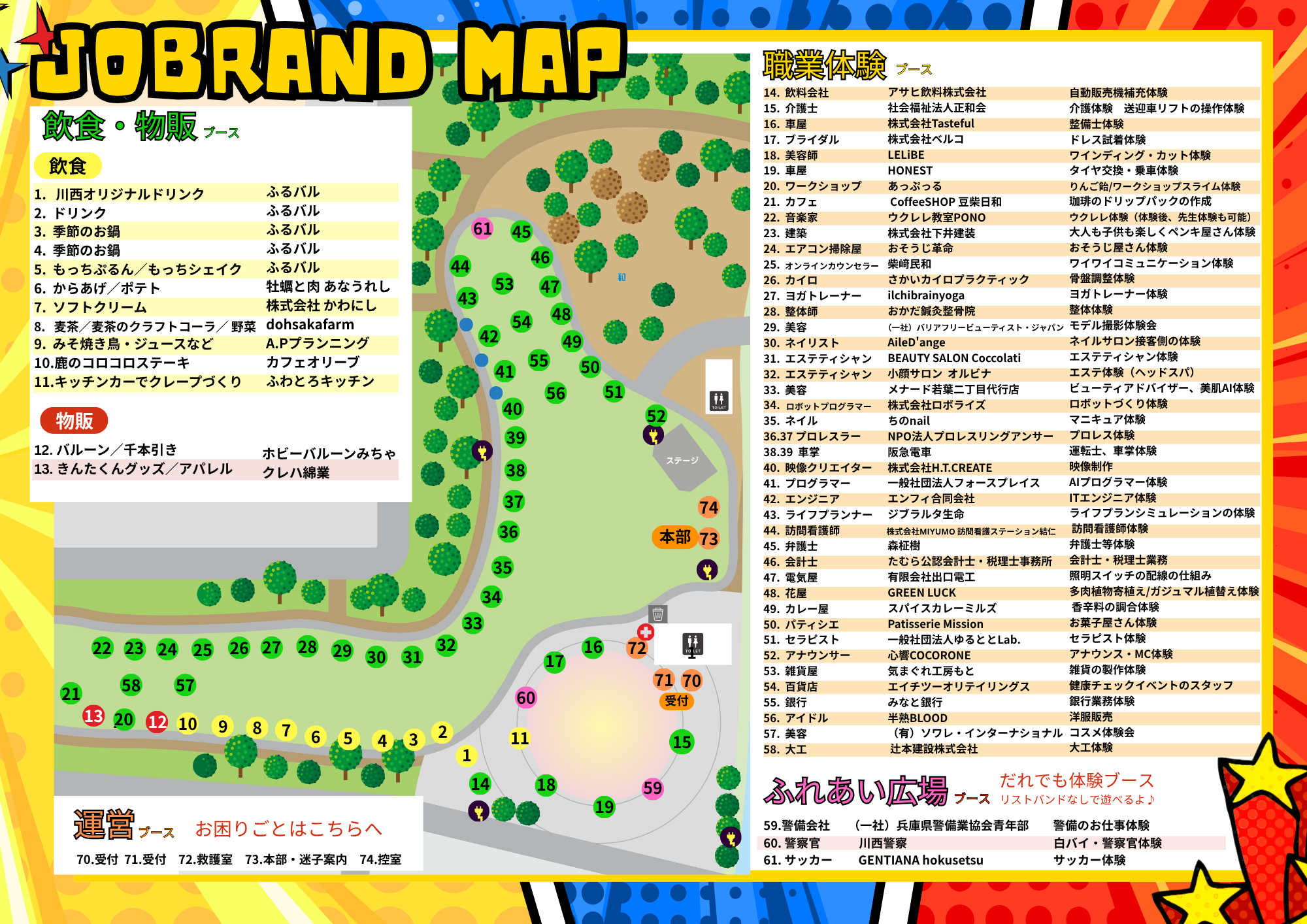 〇職業体験ブースは要事前参加予約、当日会場で2000円のリストバンドをご購入ください(リストバンド購入者には、当日会場内で使える1000円の金券とビンゴカードをプレゼント!)